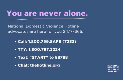 https://www.thehotline.org/ - 24 hours a day, seven days a week, 365 days a year, the National Domestic Violence Hotline provides essential tools and support to help survivors of domestic violence so they can live their lives free of abuse. Contacts to The Hotline can expect highly-trained, expert advocates to offer free, confidential, and compassionate support, crisis intervention information, education, and referral services in over 200 languages.