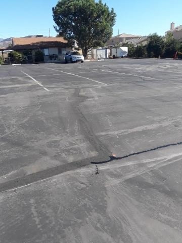 Those annoying large cracks in our parking lot have been filled!