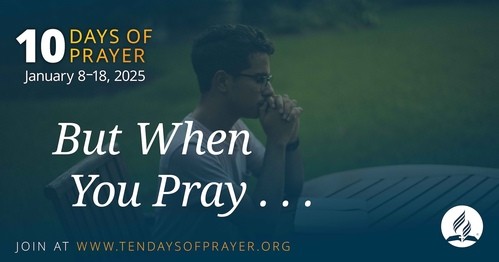 We invite you to join us for United Prayer MONDAY THRU FRIDAY at 6 am, SABBATH AND SUNDAY at 7 am, and MONDAY, WEDNESDAY, AND FRIDAY at 12 noon, WEEKLY for prayer meeting at 7 pm, EVERY SABBATH after the second service, and the FIRST SABBATH of every quarter for a day of prayer and fasting.